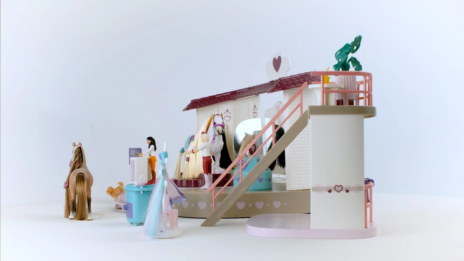 In de beautysalon van schleich® HORSE CLUB Sofia’s Beauties vind je alles om je uit te dossen voor stalfeesten, paardenverjaardagen of de eerste schooldag van het jongste veulen. Op het podium kan ieder dier pronken met zijn nieuwe accessoires. En de manen en staart kunnen zelfs heel eenvoudig worden gewisseld. Heb je de la al ontdekt?