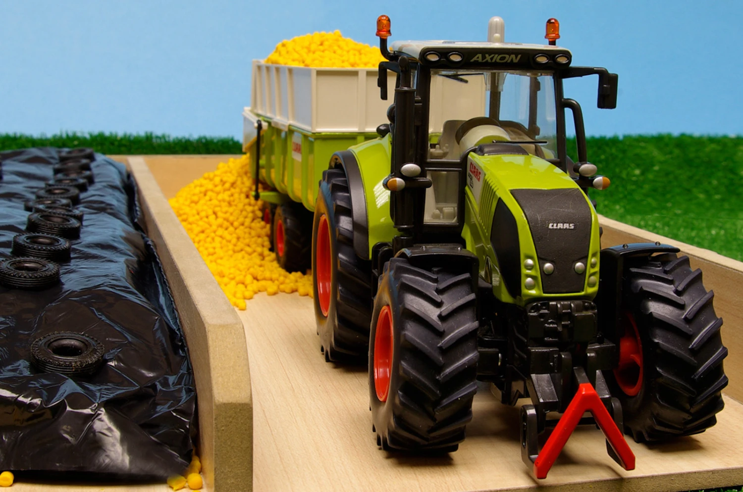Bij een boerderij hoort een sleufsilo voor het voer van de koeien. Deze sleufsilo is geschikt voor tractors met een schaal van 1:32 en heeft 2 vakken, een voor bijvoorbeeld mais en de andere voor bieten of gras. Separaat zijn zakjes met 500 gram mais en een afdekzeil met bandjes leverbaar.