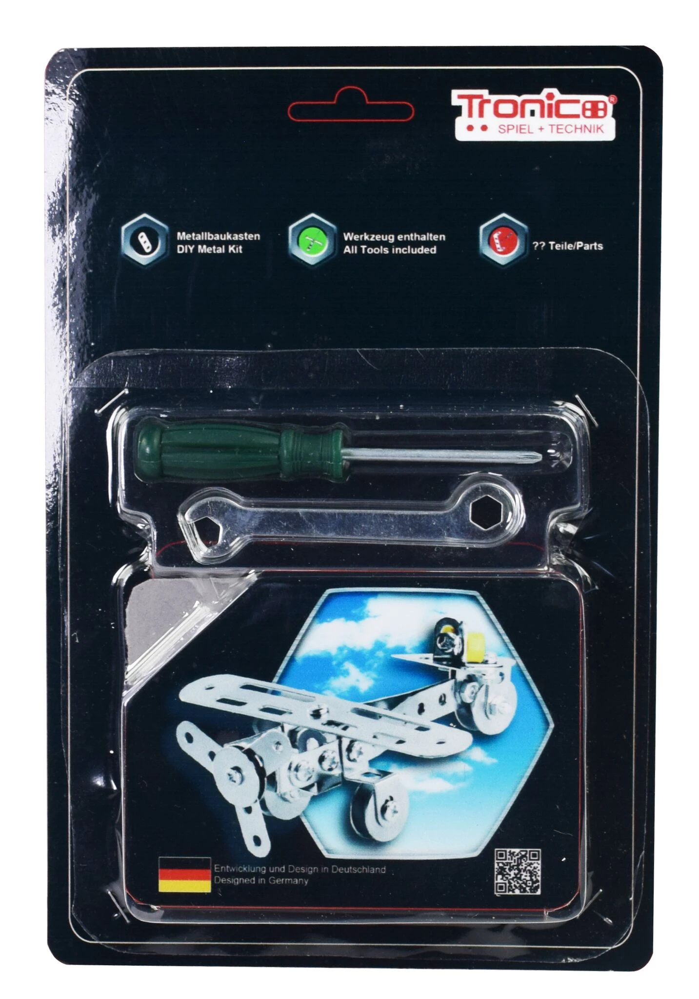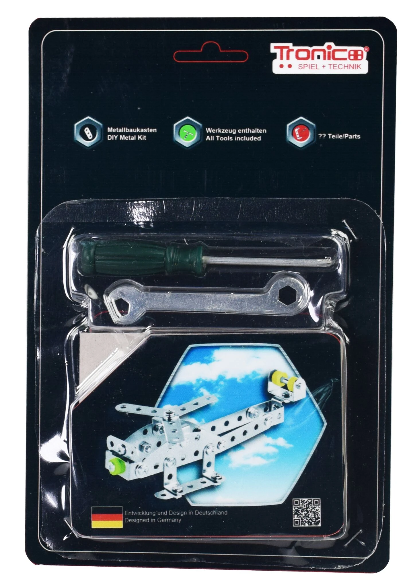 Beginnerssetje Tronico. 6 modellen; wordt assorti geleverd. Een SUV, driewieler, vliegtuig, helikopter, heftruck of terreinwagen.